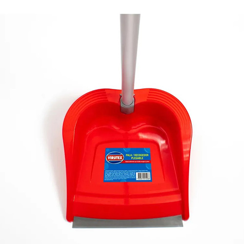 Pala plegable con mango desmontable y banda adherente que facilita la recolección del polvo.