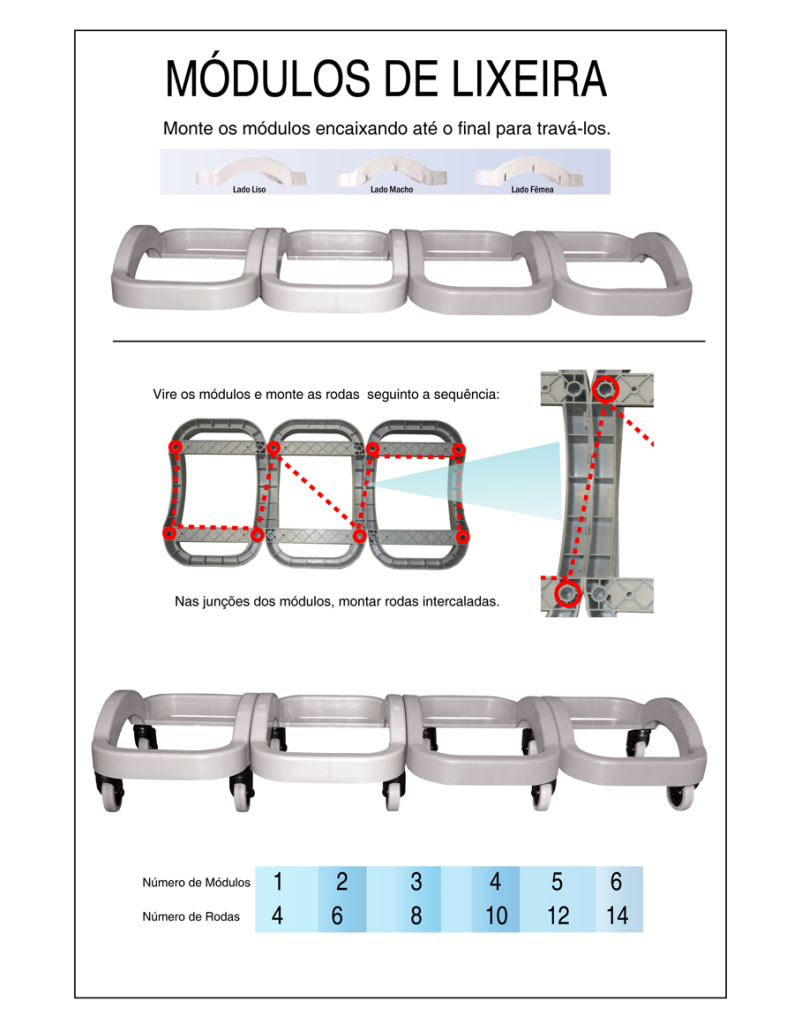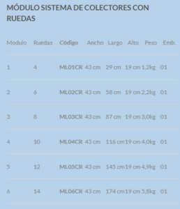 Esos Módulos pueden ser presentados CON o SIN RUEDAS para 01 a 06 colectores, fijándolos con seguridad para su movimiento individual o en conjunto.